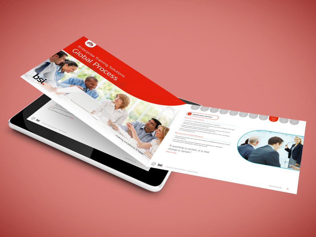 These slides are a sample cross-section of work carried out on behalf of BSI on corporate communication documents.